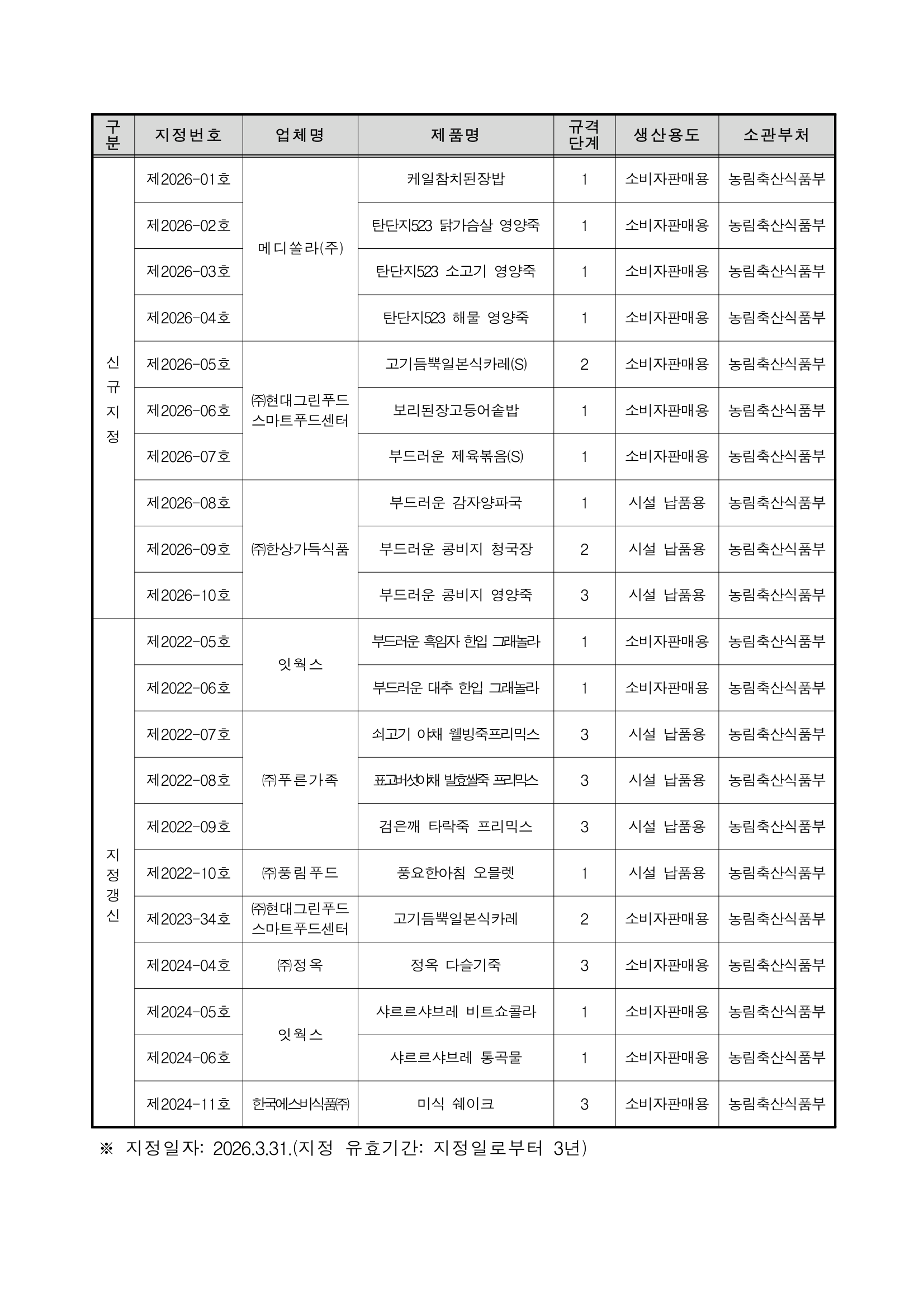 [지정공고 제2026-4호] 2026년 제1차 고령친화우수식품 지정 공고